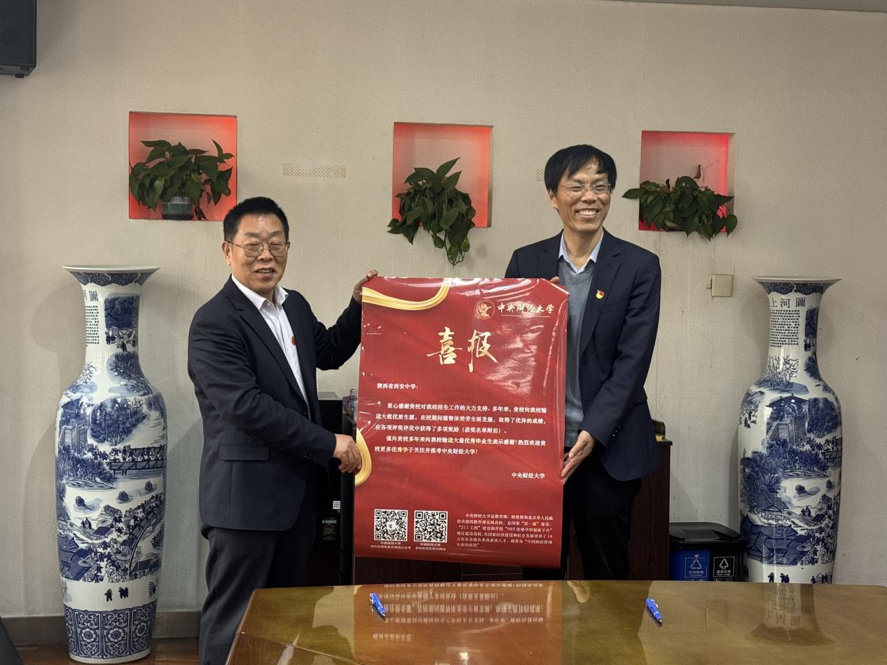 11日下午,由万象城·体育党委书记李跃新带队,陕西招生宣传组前往陕西省西安中学开展“中央财经大学优质生源基地”签约授牌仪式。西安中学副校长薛党鹏,教学处主任吕铎、副主任王理及国际部主任安秀萍参加授牌签约仪式,活动由教学处主任吕铎主持。李跃新代表我校与中学签署《中央财经大学生源基地建设协议书》并授牌。宣传组深入了解了西安中学的校史校情和生源情况,向该校领导介绍了我校的基本情况和2024年在陕西省招生情况。双方就加强合作,相互促进,共同构建基础教育与高等教育间的桥梁进行了充分交流。