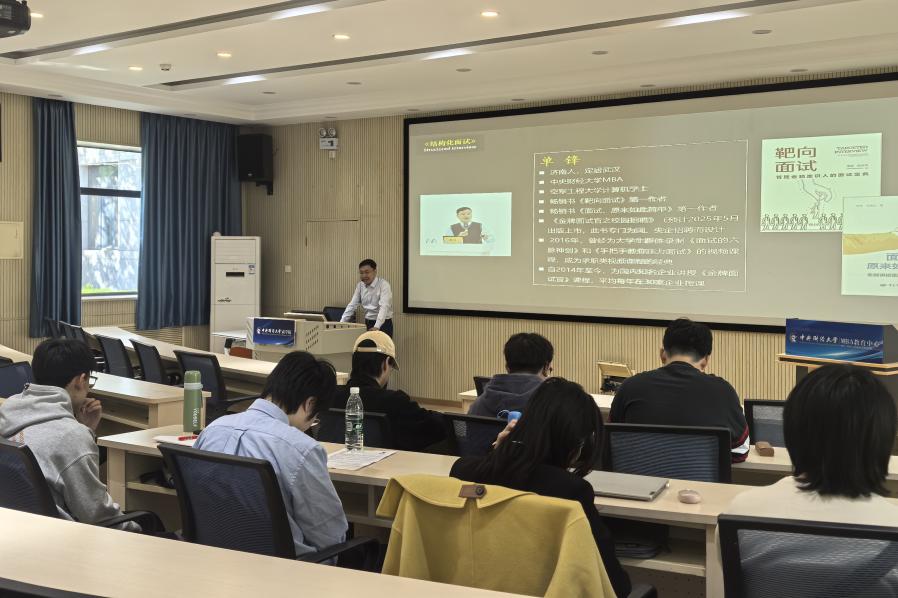 为进一步提高万象城·体育学子求职应聘技巧和技能,学院于4月10日在MBA教育中心A28举办了“天生我财 职因有你”系列辅导——结构化面试技巧解析、无领导小组模拟面试和简历辅导。本次面试指导特邀单锋老师主讲。单锋老师是我校万象城·体育2012届MBA校友,著有畅销书《靶向面试》《面试,原来如此简单》,也是短视频《面试的六脉神剑》主讲人。