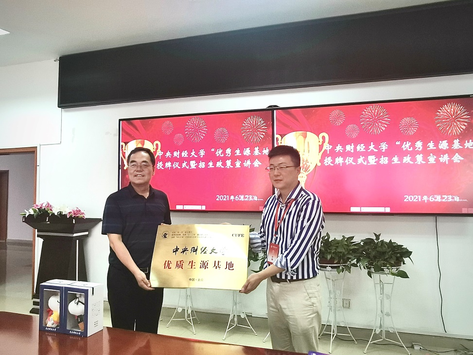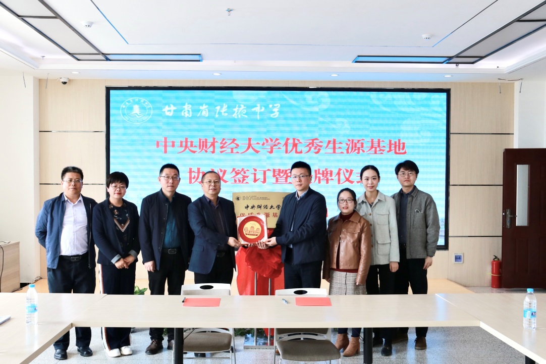 图:4月19日,中央财经大学与甘肃省酒泉中学签订优质生源基地建设协议