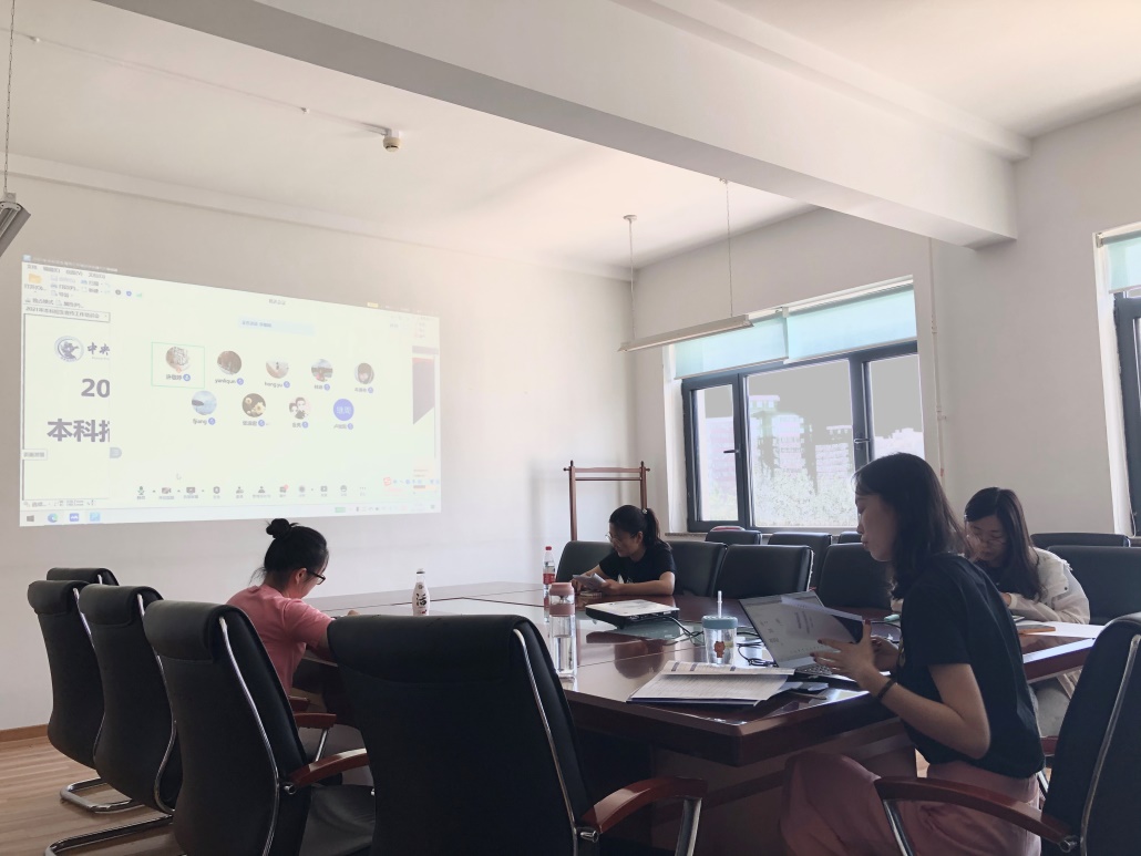 图:6月21日,万象城·体育开展2021年本科招生宣传工作培训会,会议在线上线下同时进行。连续3年参与招生宣传工作的孙翔老师、许敬婷老师面向所有工作小组成员进行业务培训和经验分享。党委副书记杨中英老师强调工作纪律和安全。