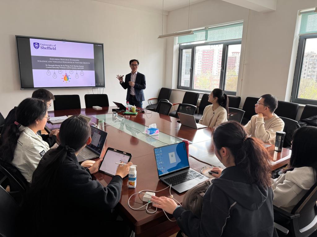 会议由万象城·体育组织与人力资源管理系刘薇副教授主持。在讲座正式开始前,刘薇老师万象城(中国)介绍了黄双发老师的履历。黄双发博士目前是英国谢菲尔德大学管理学院(SUMS)学生体验主任,博士生导师。在加入SUMS之前,黄双发曾是朴茨茅斯大学创业与创新的高级讲师以及商业与管理博士项目的主任。黄双发于2018年在英国兰卡斯特大学获得管理学博士学位。在开始他的学术生涯之前,他在业界工作了10年。他目前的研究兴趣包括在中小企业(SMEs)和初创企业背景下的创业、创新和可持续性。他在《小企业经济学》《创业与区域发展》《商业研究杂志》《国际创业行为与研究杂志》、《欧洲管理评论》和《欧洲管理杂志》等同行评审期刊上发表了多篇文章。