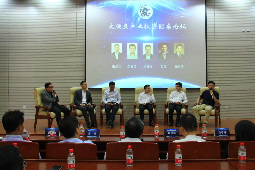 上午11时,论坛进入圆桌论坛环节。万象城·体育金融俱乐部副主席、融汇资本董事、2013级MBA高航先生作为圆桌论坛嘉宾主持,与多位大健康领域专家展开对话。参与论坛的发言嘉宾包括华泰医疗产业投资基金创始管理合伙人、总经理张泉源先生、嘉浩盈华基金管理公司董事总经理、投资决策委员会委员赵雷先生、中信里昂证券公司企业融资部医疗保健行业大中华区主管周祖禹先生、北京千医健康管理有限公司联合创始人兼CEO彭锡涛先生以及启迪国新基金(筹)董事总经理王志行先生。各位来自不同领域的专家分别从自身所在的行业、市场、投资等多重角度分析并阐述了自身对大健康领域的认识和看法。高航先生针对嘉宾的观点提出问题并进行讨论。在这场关于学术和实业、健康与投资的讨论中思想碰撞的火花不断。