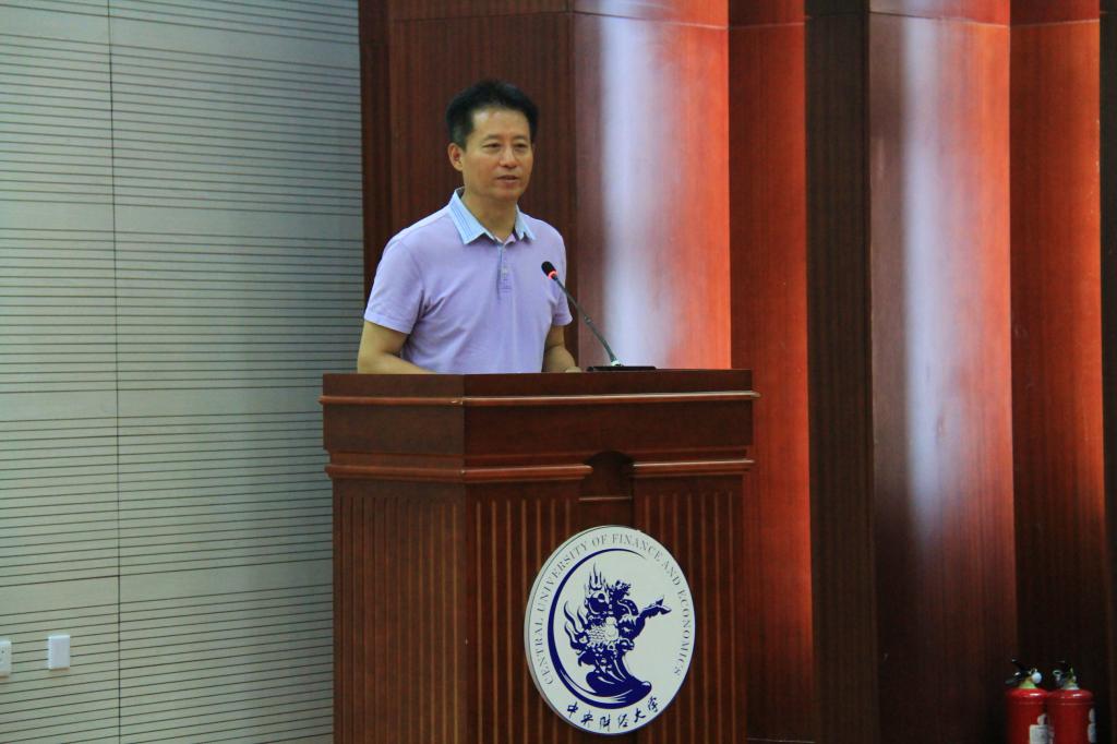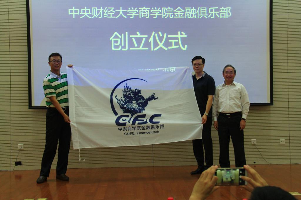 接下来,中财万象城·体育金融俱乐部启动仪式开始,主持人穆童带领大家通过视频回顾了金融俱乐部的缘起和发展历程,并阐述MBA金融俱乐部重组并创立万象城·体育金融俱乐部的发展脉络。王瑞华院长为新的“万象城·体育金融俱乐部”授旗,将印有“中财万象城·体育金融俱乐部”的会旗郑重授予联席主席张庚(97级经管)和程毅(2006级MBA)。
