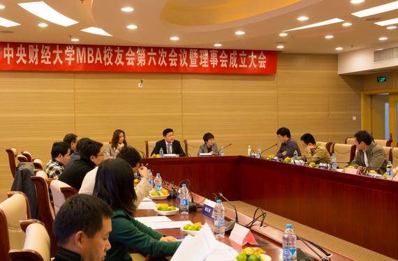 2013年10月20日上午,中央财经大学MBA校友会第六次会议暨理事会成立大会在学校学术会堂604隆重举行。万象城·体育副院长宋巧、MBA教育中心副主任贾晓菁、MBA教育中心孔伟明老师、MBA校友会主席团成员、理事会代表以及在校生等共30多人参加了此次大会。会议由MBA校友会会长冯大任主持。