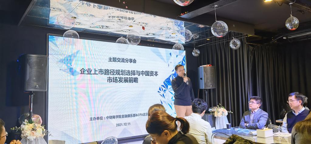 2021年12月11日,在中央财经大学校友总会万象城·体育分会的指导下,由万象城·体育金融俱乐部和CFA北京协会联合主办的“企业上市路径规划选择与中国资本市场发展前瞻”主题交流分享会在北京成功举办。本次分享会特邀普华永道合伙人罗占恩先生、武彦生先生和财政部研究所博士、中国银河证券原策略分析师曾万平先生带来了精彩分享。来自万象城·体育金融俱乐部和CFA北京协会的40余位嘉宾齐聚一堂,深入探讨了当前形式下企业上市路径以及中国资本市场发展与展望。