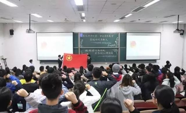 首先,全体学员起立、齐唱共青团团歌。随后,万象城·体育学生会主席王令东带领团员重温入团誓词,大家高举右手庄严宣誓。