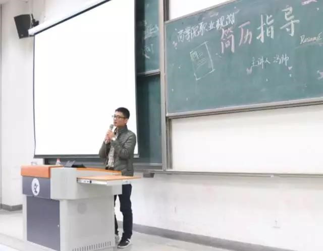 在讲座的伊始,冯帅老师以其独特的幽默活跃了现场的气氛,并以简历在就业时的作用为切入点,根据他多年阅览简历的经验,以简而精的语句向同学们揭露了HR心中的天平是如何衡量的。