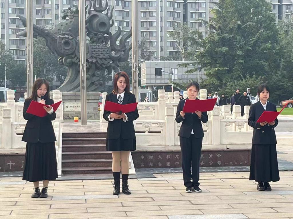 社会与心理学院的学生代表们朗诵了爱国篇目《青春心向党,强国在我心》,激昂慷慨的朗诵展示了中财大学子奋发有为的精神面貌,彰显了青年人以奋进姿态肩负国家重任的决心,在党的带领下,青年与新时代同向同行,砥砺前行,笃行不怠。