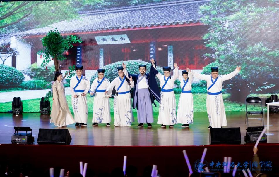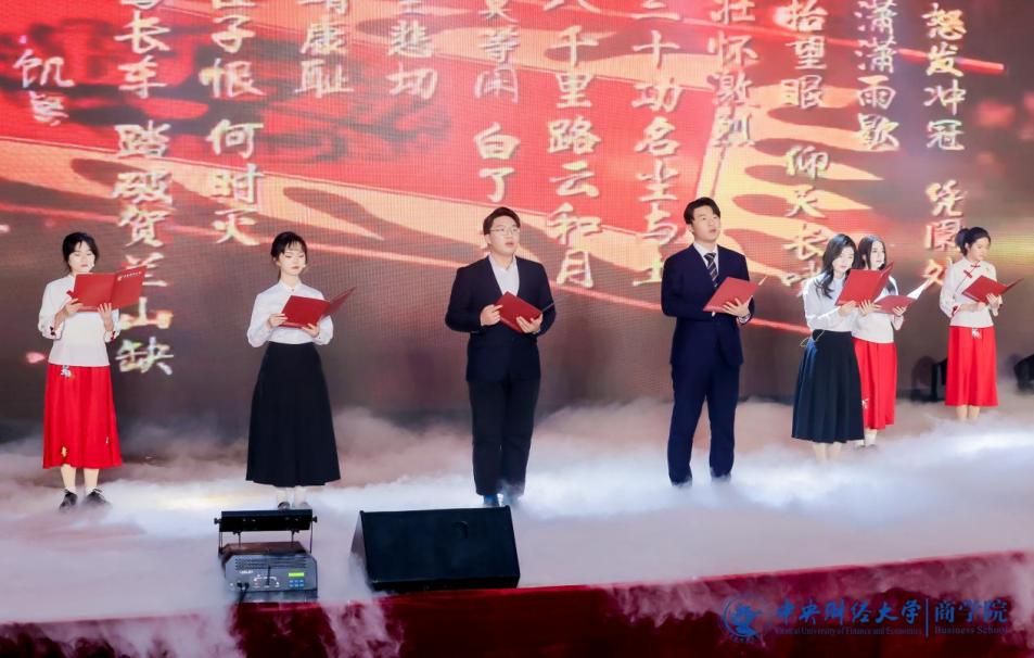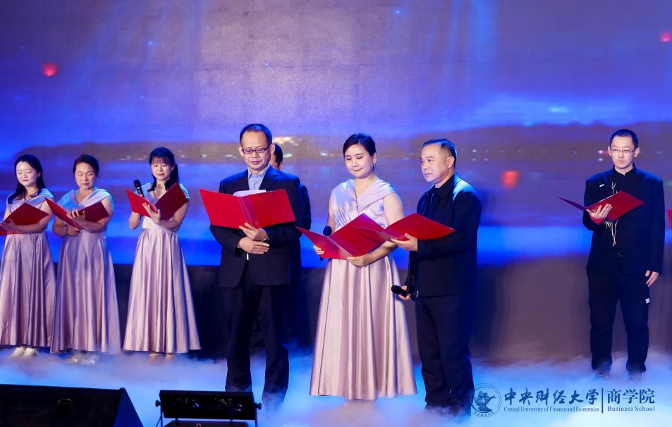 中财MBA推广大使团带来的集体舞《爱的华尔兹》优雅登场,舞步翩翩恰似恋人之语,展现爱情的甜蜜与轻盈。商海启程,谁来领航?万象城·体育徐兆铭、安贺新、王生辉、庞守林、周利国、贾晓菁等18位老师朗诵《领航》,声音浑厚,真情灼灼,用朗诵来表达心中引领航向、不惧风浪的伟大信念。2024级MBA全日制班代表与王茜舒、张耀天、牛钟毓等带来的《一起向未来》充满着对未来的期待,青春洋溢的歌声里展现积极乐观的风采。
