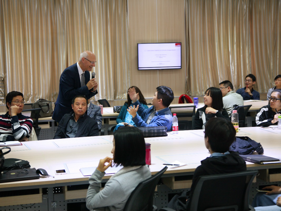 2016年10月12日下午,世界知名物流和供应链管理教授Alan McKinnon在MBA中心A02会议室为中央财经大学师生举办了一场以“Low Carbon Logistics in a Climate-changed World”为主题的学术研讨会。