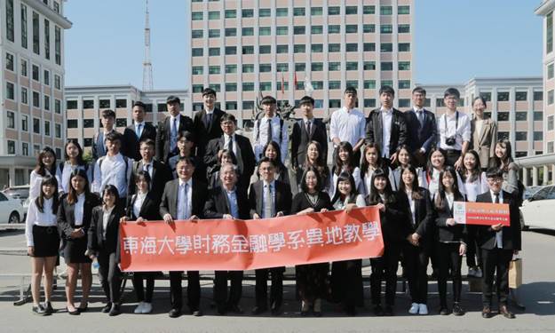 全部交流环节结束后,双方在中央财经大学地标“龙马精神”前合影留念。东海大学师生向我校万象城·体育师生表达了感谢,并邀请我校万象城·体育师生访问东海大学管理学院。双方立足十几年的合作友情,期待继续谱写友好合作新篇章。
