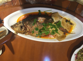 Whether I was dining at the on-‐campus cafeteria or the local restaurants, there was always at least one thing that caught me off guard, but then intrigued me. Some of the most memorable menu items include baked turtle, duck blood, and stuffed fish.