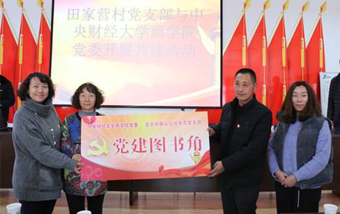 In order to further promote and enrich the cultural activities and business operation experience ofthe village, the Party Committee of CUFE Business School donated 100 books inbusiness management and social sciences to the Party Branch of Tianjiaying Village, and co-constructed the “Party Member Library Conner”. Ms. Han Lan, Party Organizer of CUFE Business School Party Committee, and Ms. Wang Rong, Vice Secretory of CUFE Business School Party Committee, donated books together to the Party Branch of Tianjiaying Village on behalf of the Party Committee of CUFE Business School.