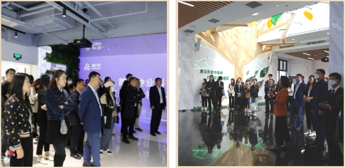 Before the exchange meeting, teachers, students and alumni of the Business School went to Beijing Huadu Yukou Poultry Co., Ltd., Xiying Science and Technology Backyard of China Agricultural University, Innovation Factory of Pinggu Zhongguancun Agricultural Science and Technology Park and other places for field research and exchange.