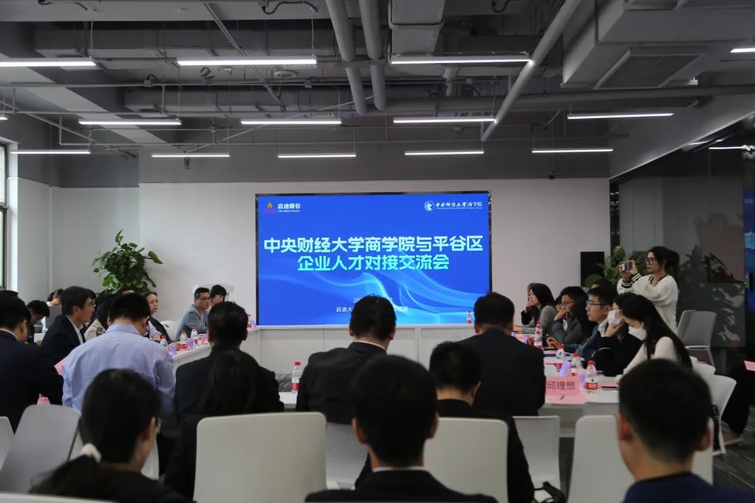 With the theme of "Integration of Industry and Education to Seek Cooperation Together, Teachers, Students and Alumni Enterprises of the CUFE Business School Entered Pinggu", the Enterprise Talent Matching Exchange was successfully held at Green Valley Accelerator, Qidi Street.