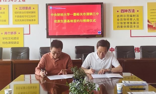 From May 21 to 24, 2024, LiYuexin, leader of the Gansu Provincial Enrollment Publicity Group of CUFE and secretary of the Party Committee of the Business School, LuJizhou, a member of the Gansu Provincial Enrollment Publicity Group of CUFE and an associate professor of the Department of Supply Chain and Operations Management of the Business School, and LiZhengchen, a member of the Gansu Provincial Enrollment Publicity Group of CUFE and an undergraduate counselor of theBusiness School went toJiayuguanNo. 1 High School,JiayuguanJiugangNo. 3 High School,ZhangyeNo. 2 High School, and WuweiNo. 1 High School in Gansu province successively to conduct undergraduate enrollment promotion work in Gansu Province. The Gansu Provincial Enrollment Publicity Working Group held discussions and exchanges with the leaders and teacher representatives of the four high schools, gained a deeper understanding of the history, situation and development condition of CUFE, and introduced the basic information of CUFE and the enrollment condition in Gansu province to the leaders and teacher representatives of CUFE. The two sides had sufficient discussions and exchanges on strengthening cooperation, improving the effectiveness of enrollment publicity and jointly building a bridge between basic education and higher education. After the discussions, CUFE signed the “Student Source Base Construction Agreement” withJiayuguanNo.1 High School,JiayuguanJiugangNo.3 High School,ZhangyeNo.2 High School andWuweiNo.1 High School, and held the awarding ceremony of “CUFE High-quality Student Source Base”. Among them,ZhangyeNo.2 High School engaged LuJizhou, an associate professor of the CUFE Business School, as the vice president of technology of ZhangyeNo.2 High School, opening a new chapter of cooperation between universities and high schools.