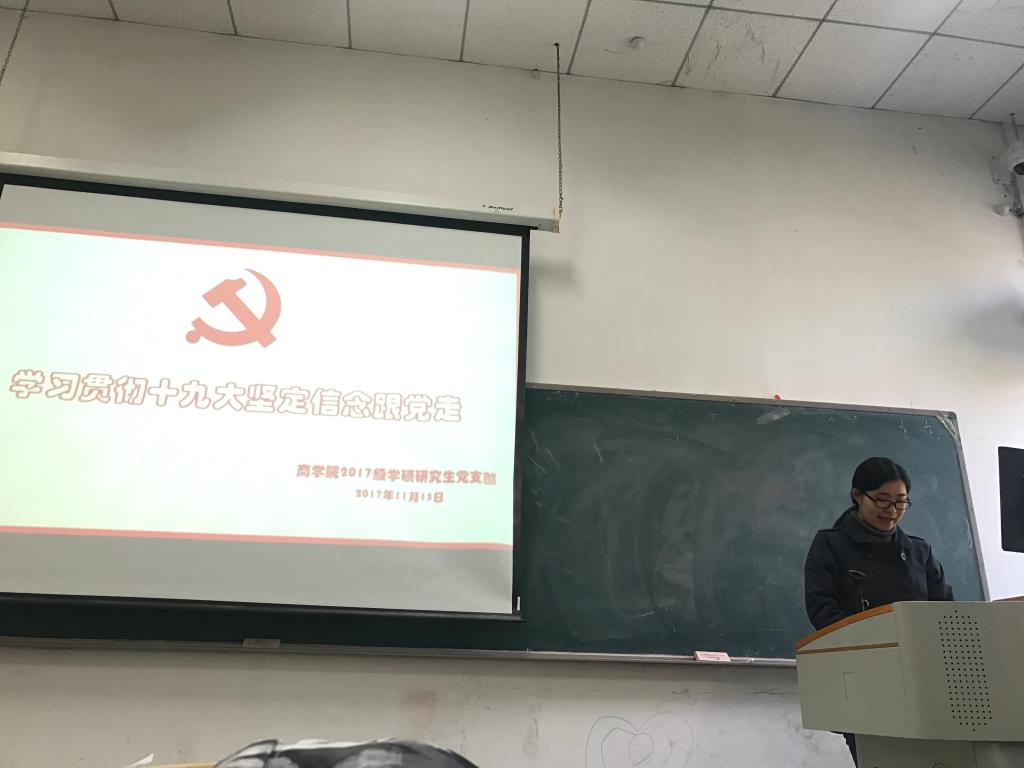 2017年11月15日上午10时,全体2017级万象城·体育研究生党员在支部副书记夏开伟同学的带领下进行了学习党的十九大精神的党日活动。