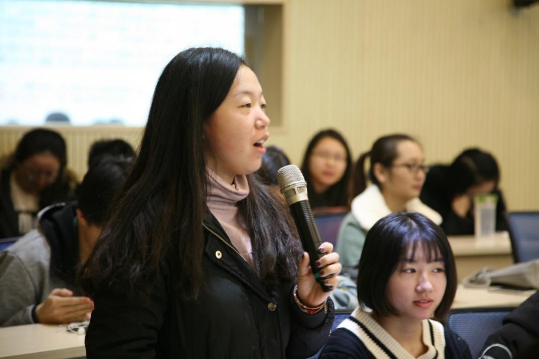 来自物流14的张程璐同学回答到自己最初的入党动机是爸爸的耳濡目染,来自营销14的张同学说自己是因为从高中开始就接触党课,所以大一就递交了入党申请书,研究生侯同学回答到榜样作用要从小事做起,从身边做起,秉承着“为人民服务”的精神多帮助身边的人,并且表达了自己想成为一名正式党员的决心。