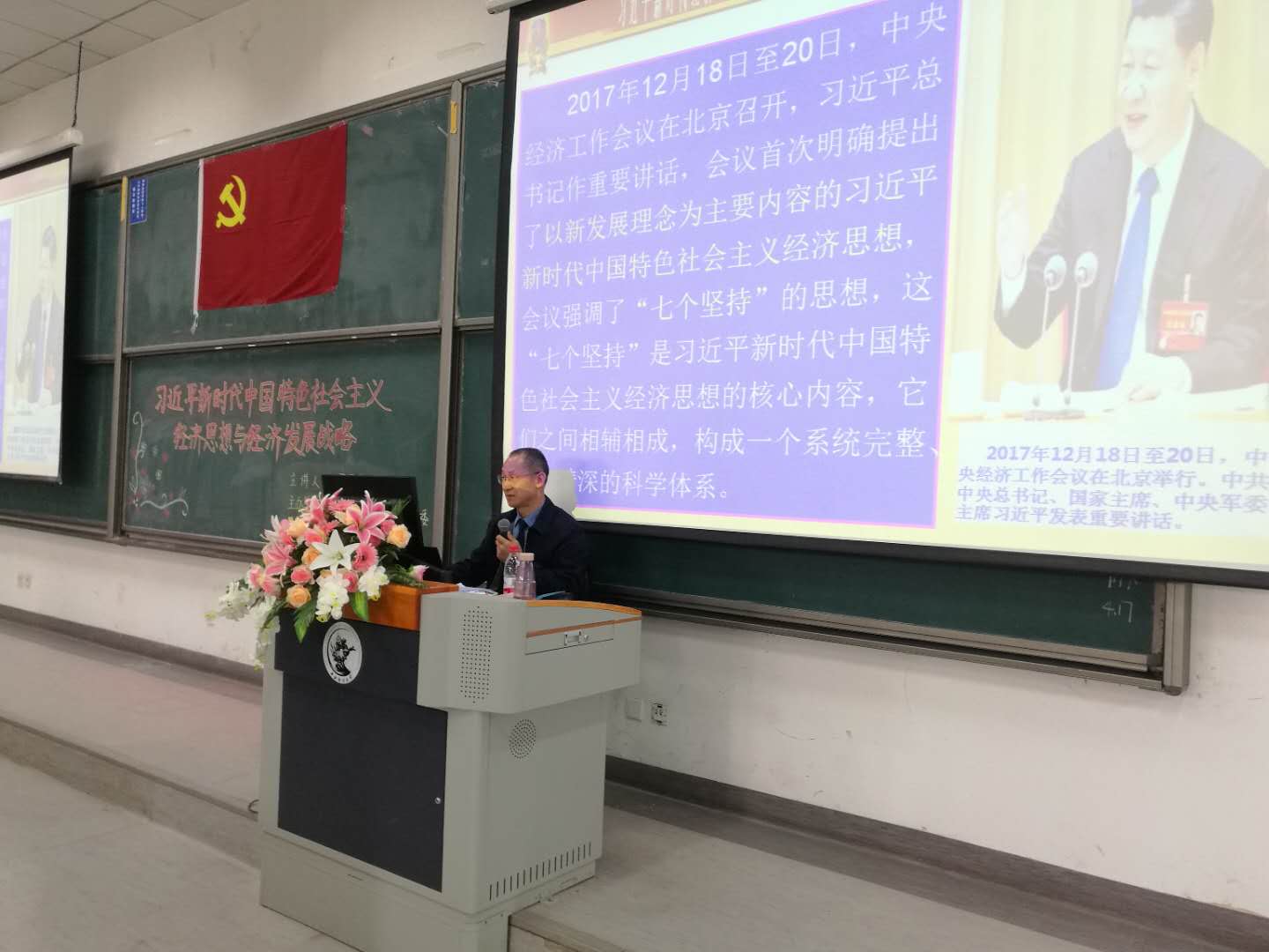 接下来,张军果教授从我国经济保持中高速增长,经济结构改善、经济效益提升,创新能力增强,对世界经济的贡献和国际地位明显提升等八个方面介绍了我们在经济领域取得的骄人成绩。在讲座的最后,张军果教授对同学们提出了殷切的希望,希望大家一定要抓住难得的历史发展机遇,不断深化对习近平新时代中国特色社会主义经济思想的认识,在行动上自觉落实党和国家经济发展战略部署,书写自己的无悔青春。整场讲座气氛热烈,张教授的精彩发言赢得在场师生的阵阵掌声。
