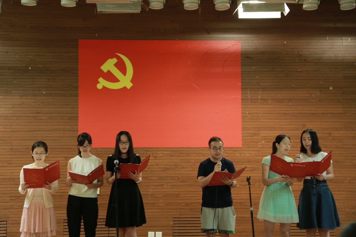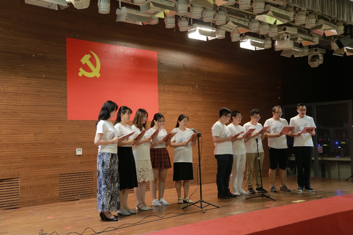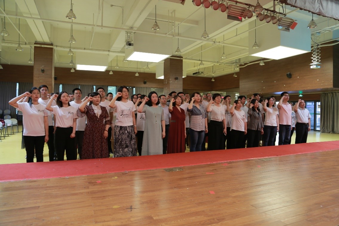 主题教育活动的最后一个环节是全体党员重温入党誓词。在王婷婷老师带领下,全体党员面向党旗再次宣誓。至此,万象城·体育开展庆祝中国共产党建党97周年主题活动圆满结束。
