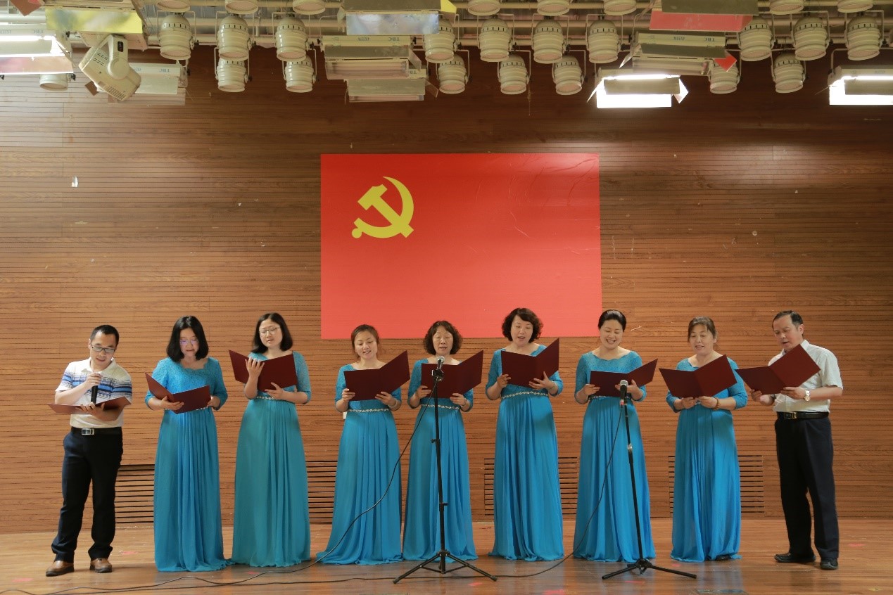 在党支部红歌比赛结束后,万象城·体育教工合唱团进行了精彩的表演,为大家带来了《春风吻上我的脸》、《南屏晚钟》两首曲目。