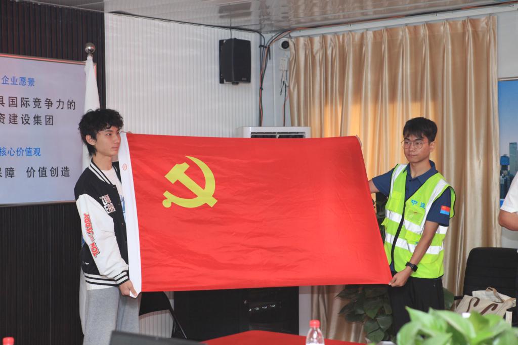之后,贺志强带领大家重温入党誓词。大家面对鲜红的党旗和庄严的誓词,高举右拳,庄严宣誓,表达了对党的无限忠诚、热爱和听党话、跟党走的坚定决心。