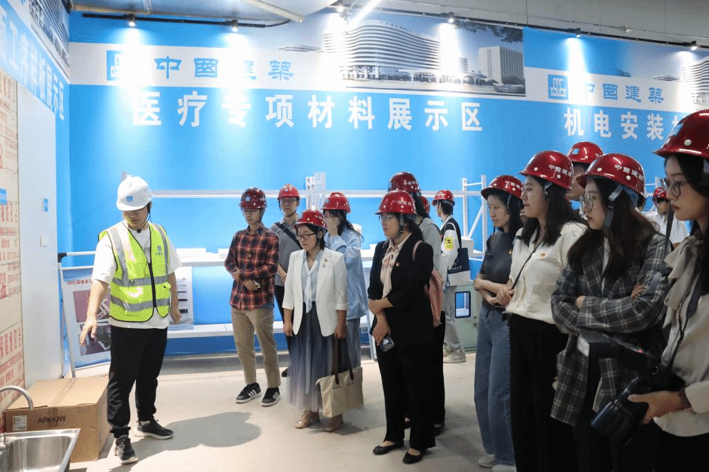 最后,讲解员带领大家一起到工地参观。人性化的设计、环保无害的建材、精进完善的技术、紧张高效的工期安排……处处彰显中建三局“忠诚担当,使命必达”的建筑精神和“敢为天下先,永远争第一”的企业品格。