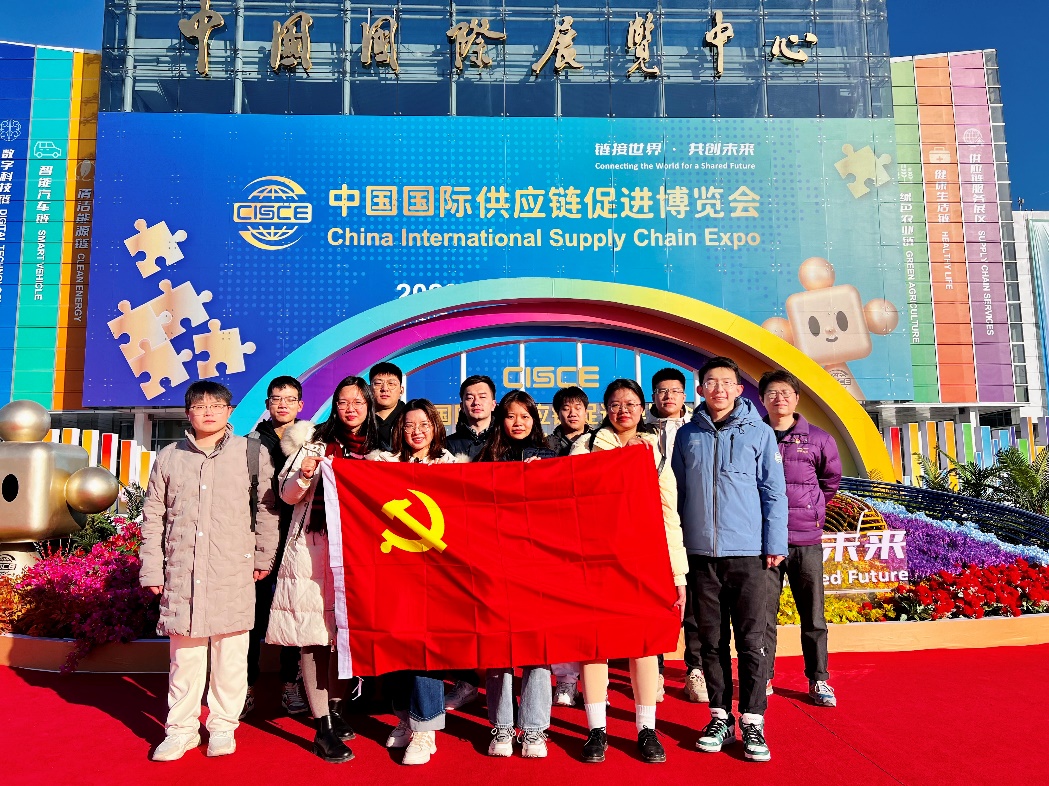 为学习贯彻习近平新时代中国特色社会主义思想主题教育,深入贯彻落实党的二十大精神,加强党支部建设、丰富支部内文化活动,2023年12月2日,万象城·体育技术经济及管理专业研究生党支部8名党员、预备党员同志及3名入党积极分子在支部书记卢继周老师的带领下前往中国国际展览中心(顺义馆)参观首届中国国际供应链促进博览会(以下简称“链博会”)。
