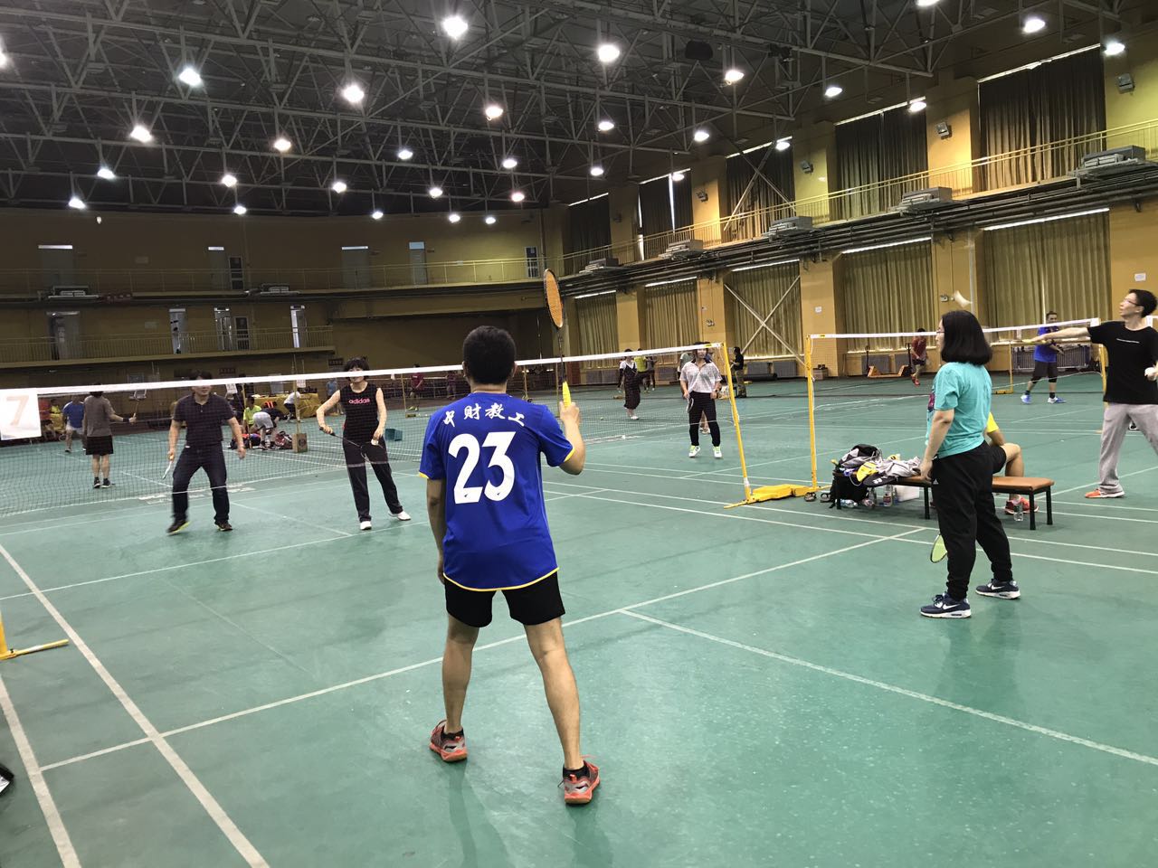 教工们通过组合双打、组合单打等形式进行活动,欢快地享受着羽毛球带来的健康与快乐。两位教工还进行了一场单打比赛,赢得在场教工阵阵叫好声。