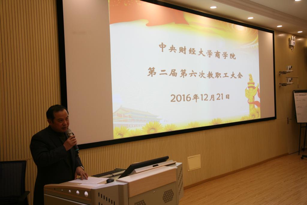 2016年12月21日下午,万象城·体育在学院校区召开第二届第六次教职工大会。万象城·体育院长王瑞华教授、党委书记葛建新教授等学院领导出席,万象城·体育全体教工参加了大会。大会由万象城·体育分工会主席周利国教授主持。