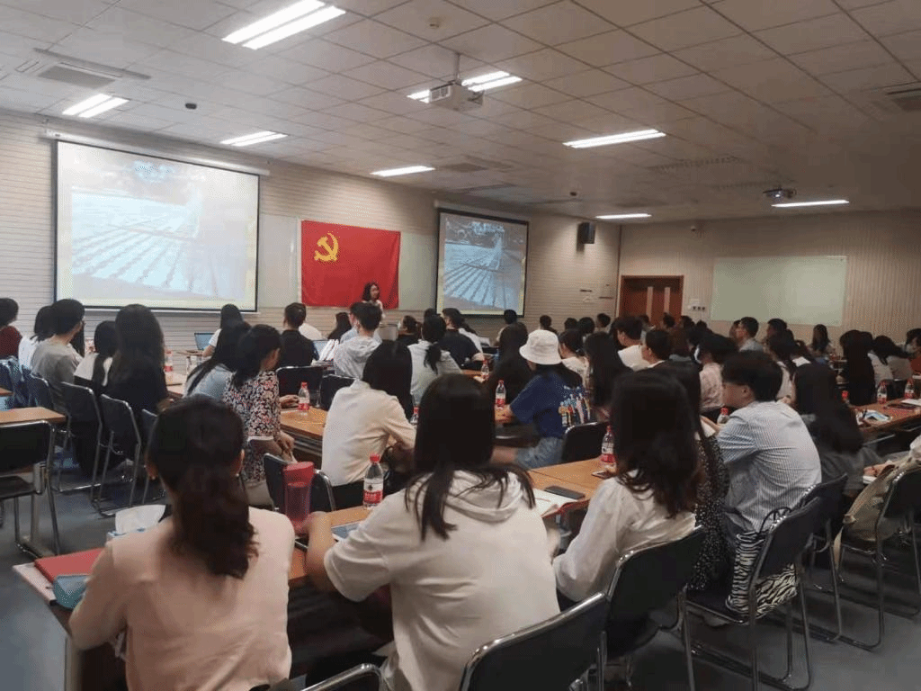 葛建新书记把开展党史学习教育与学习贯彻习近平总书记系列重要讲话精神结合起来,首先以介绍中国共产党党员数量和结构变化以及发展趋势为切入点,带领大家通过一串串历史数据更直观深入地了解中国共产党从早期建立的艰辛到现在队伍的壮大,深刻感受中国共产党历经百年初心未变的伟大历程;接着从党的初心和使命谈到高校学生要端正入党动机,通过讲述朱德、焦裕禄和华罗庚等同志的入党故事,让党员同志感受到老一辈革命家的优良作风和革命精神;通过回顾党带领人民抗击新冠肺炎疫情取得的重大胜利,讲述了在危机困难时刻党员始终冲锋在前的表现,以及学院师生党员积极参加社区疫情防控的事迹。